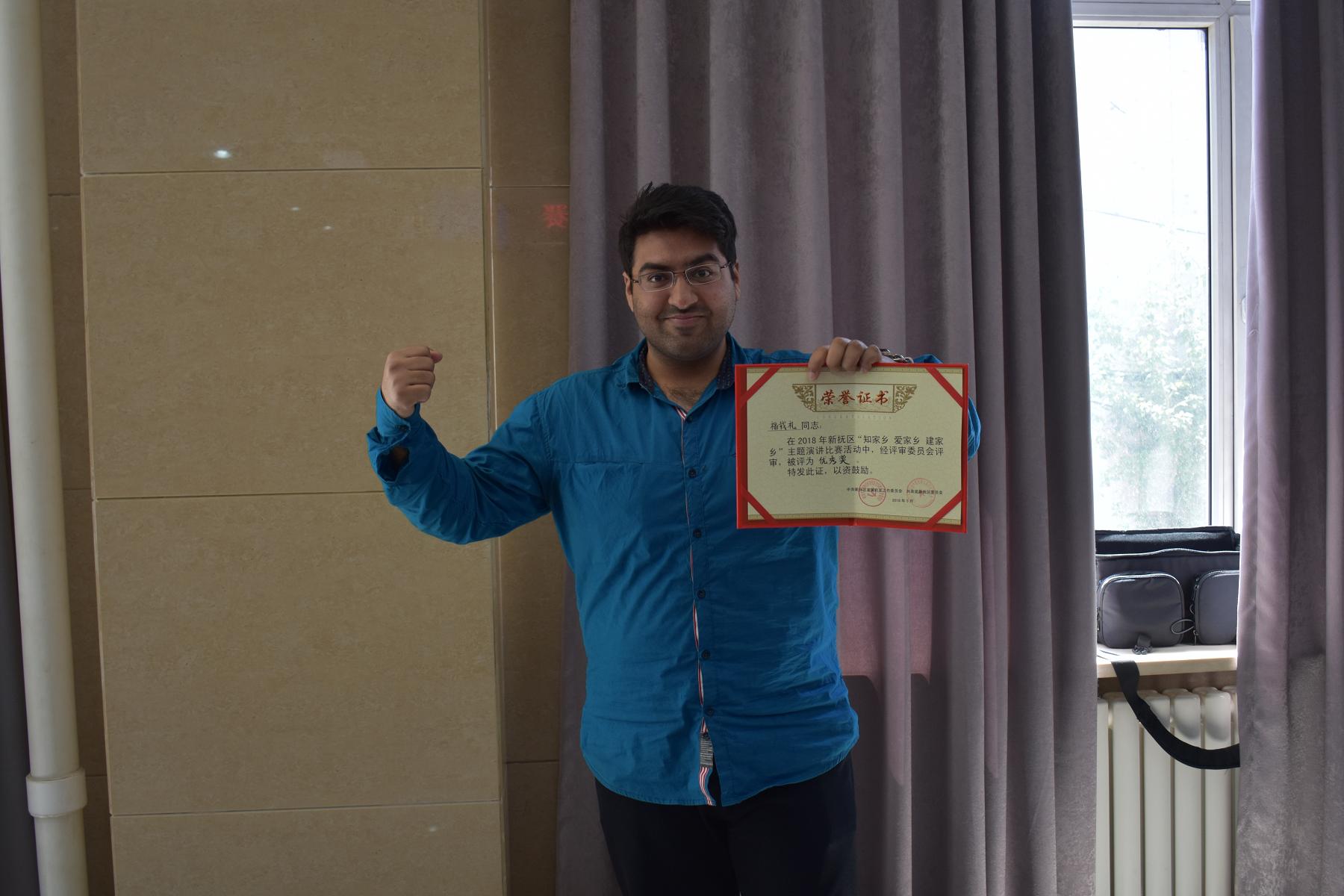 活動得到了全區機關、企事業單位廣大青年職工的積極響應,我公司選送了實習員工福載禮,一位來自巴基斯坦的留學生參加了比賽。經過預賽的激烈角逐,福載禮與其他13名選手從初賽中脫穎而出,進入決賽。他們們從不同角度和不同層面闡述了對撫順的熱愛之情。他們用如火的激情表達投身家鄉建設的決心;他們用不忘初心的使命踐行新時代新青年的擔當。他們深情地講述一個個生動真實的故事,對“知家鄉 愛家鄉 建家鄉”做出最好的詮釋。他們的精彩演講不時贏得評委和現場觀眾的陣陣掌聲。