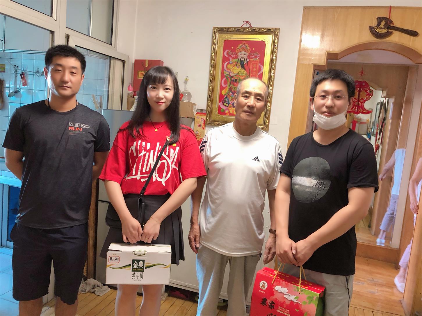 志愿者們走訪看望社區的老黨員們為他們送去了牛奶、雞蛋等慰問品和節日的祝福。志愿者們讓老黨員們感到愛灑空巢屋,志愿者們的親切問候感染著每一位老黨員,老黨員們眉開眼笑,激動地拉著志愿者們的手連聲說著謝謝。老黨員們對于我們的走訪非常歡迎,并表示感謝黨和人民政府的好政策,使他們能安度晚年;感謝國家培養的好青年,愿意陪伴老人們聊天,聽老一輩的事跡;感謝志愿者們,時常上門關懷和關心他們的生活狀況。并讓青年志愿者們要時刻銘記黨和國家的號召,緊跟黨走,做一個對國家對社會有貢獻的人才。