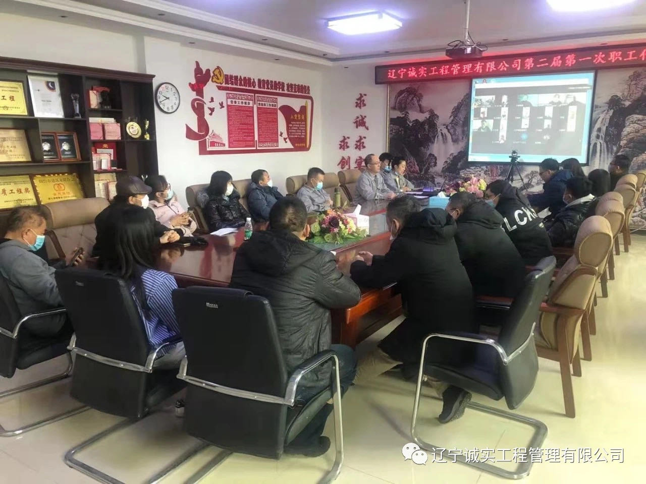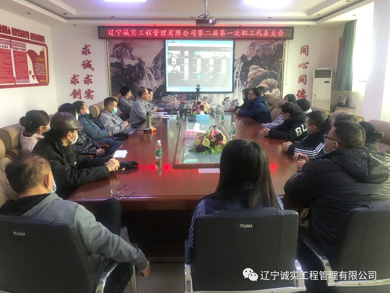 2021年2月9日早9:30在公司一樓會議室召開了遼寧誠實工程管理有限公司第二屆第一次職工代表大會,由于工作原因,一部分職工代表無法回撫,代表會結合線上、線下共同召開。共計40位職工代表,實到會議37位(其中線上17位,線下20位)。出席此次會議的領導有:總經理田立奎、副總經理任潤東(美亞項目總監理工程師)、副總經理鄧戎龍。