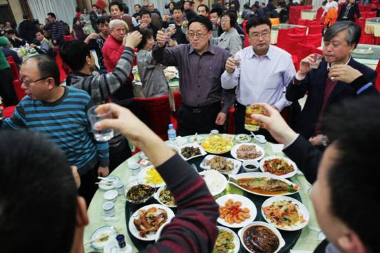 公司領導班子在晚餐會上