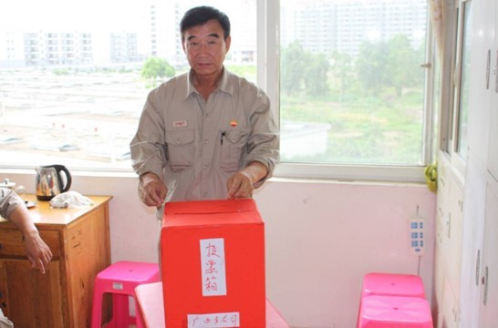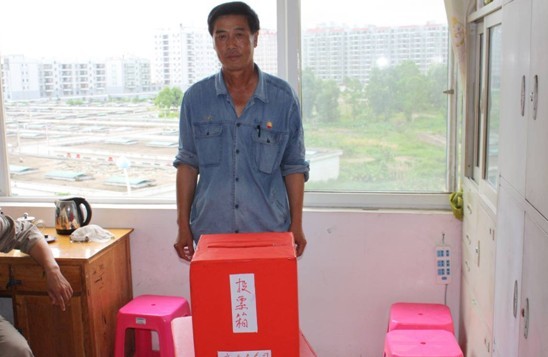 監(jiān)票人在檢查投票箱