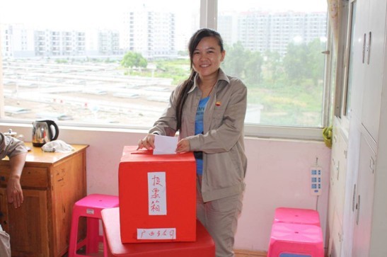 廣西視頻會場的黨員在投票選舉