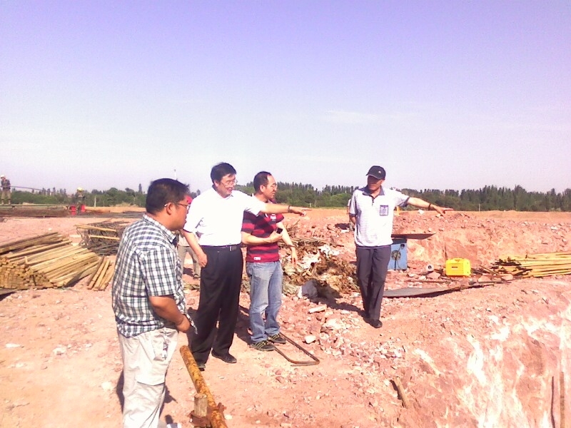 七月八日公司領導來騰格里項目視察,總經理孫學良(左二)等公司領導在水源地泵站詢問進展工程情況
