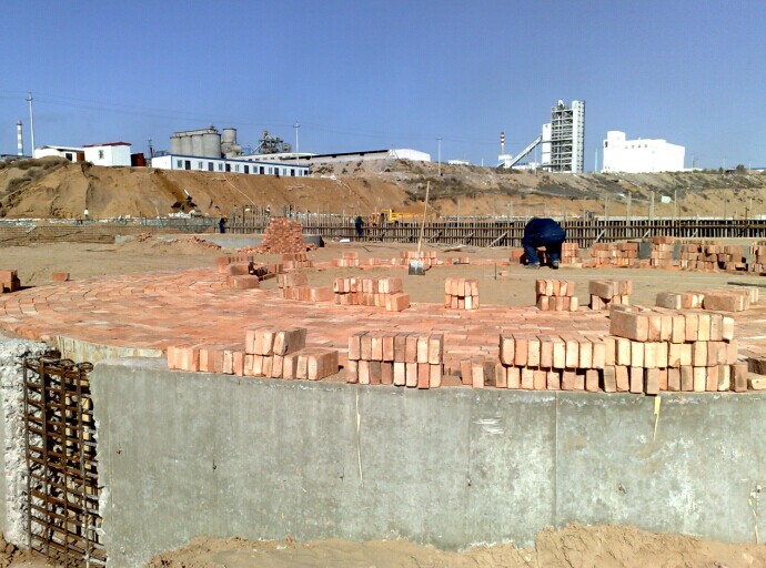 儲(chǔ)運(yùn)罐區(qū)的原料罐鋪紅磚